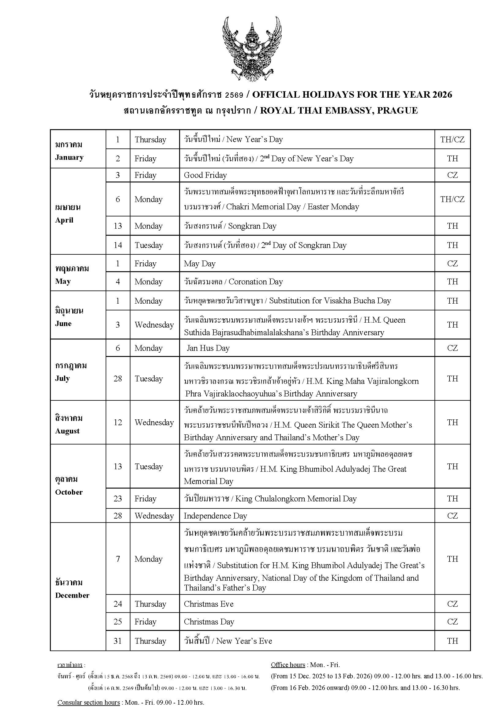 Holiday 2026